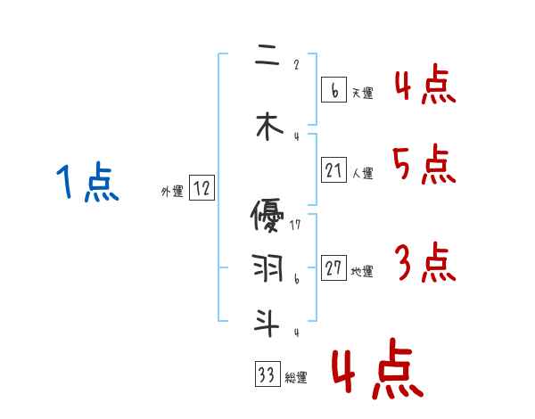 総運![]() | 二木優羽斗さんの総運は33画の4つ星!権力志向でプライドが高い。勇気があり運を切り開き成功する。 あなたの人生を表す1番重要な運勢です。生涯を通じて影響する総合運となり、主に50歳以降の晩年期に影響を及ぼします。 |