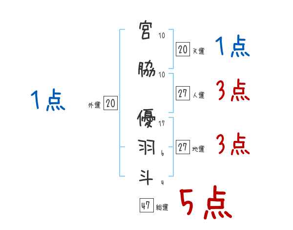 外運![]() | 宮脇優羽斗さんの外運は20画の1つ星!社交が苦手。人とは違った才能があり波乱万丈な人生かも。 生活面を象徴する運勢です。外部から受ける影響力を表し、結婚運、家庭運や職場、環境への順応性を表します。 |