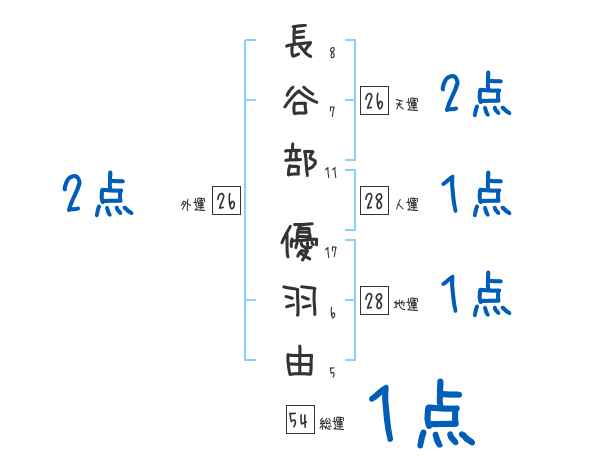 長谷部優羽由さんの画数の鑑定結果