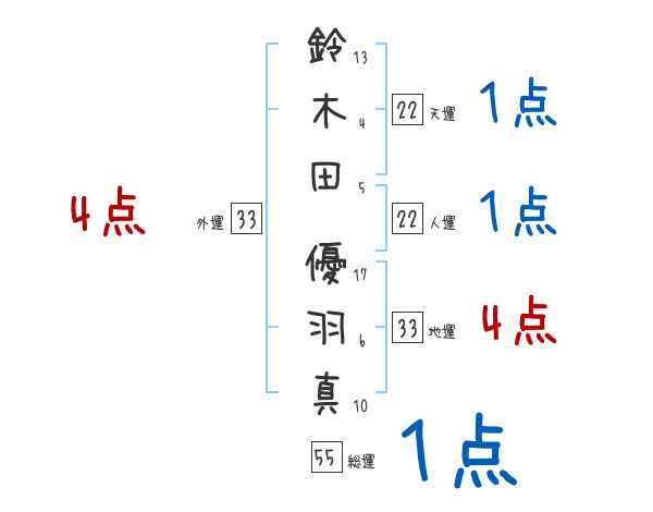 鈴木田優羽真さんの画数の鑑定結果