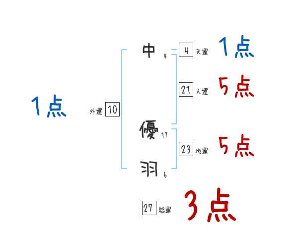 中優羽さんの画数の鑑定結果