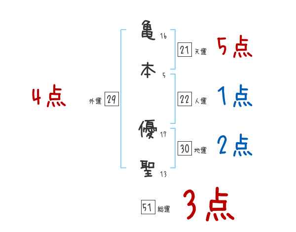 亀本優聖さんの画数の鑑定結果