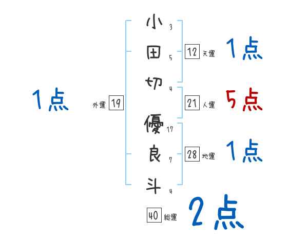 小田切優良斗さんの画数の鑑定結果