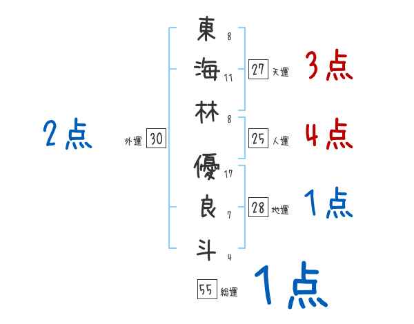 外運![]() | 東海林優良斗さんの外運は30画の2つ星!浮き沈みの激しさに注意しましょう。 生活面を象徴する運勢です。外部から受ける影響力を表し、結婚運、家庭運や職場、環境への順応性を表します。 |
