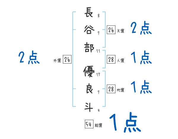 長谷部優良斗さんの画数の鑑定結果