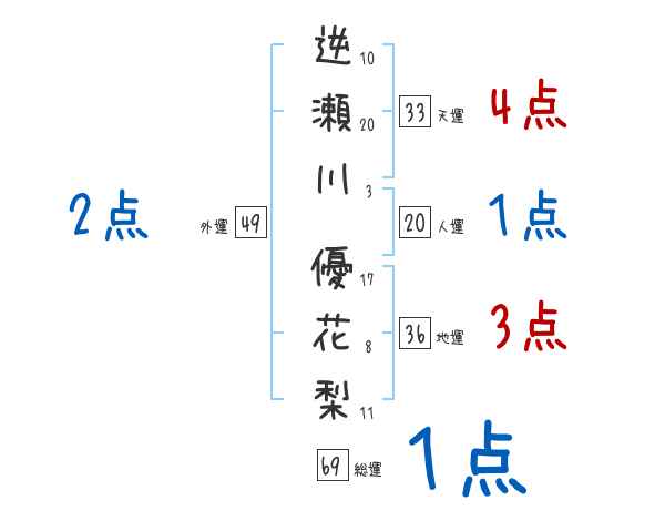 逆瀬川優花梨さんの画数の鑑定結果