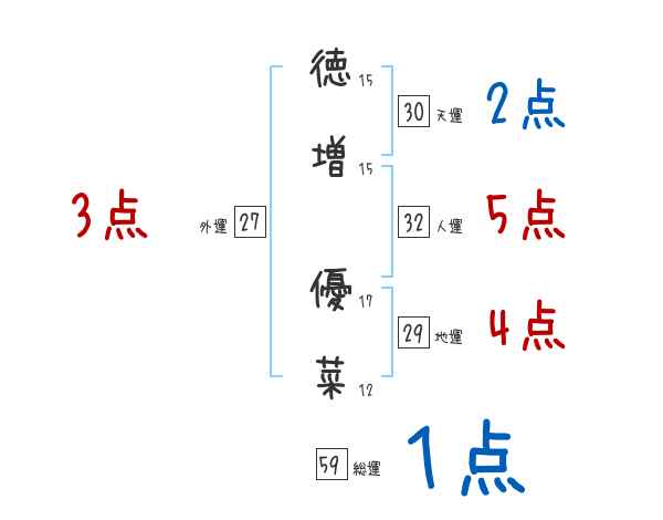 徳増優菜さんの画数の鑑定結果