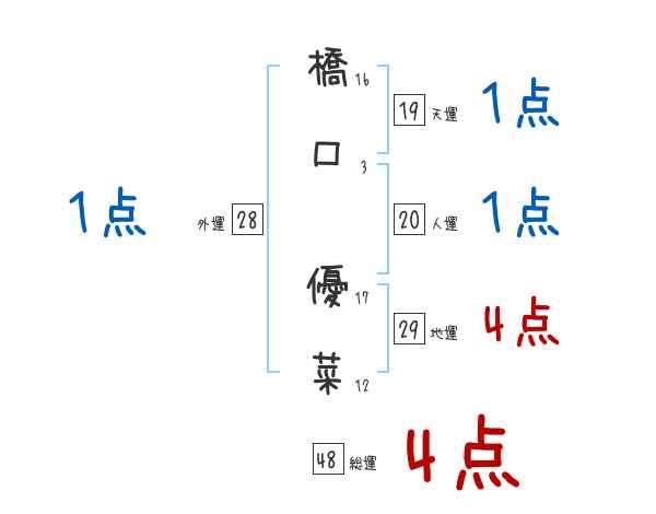 橋口優菜さんの画数の鑑定結果