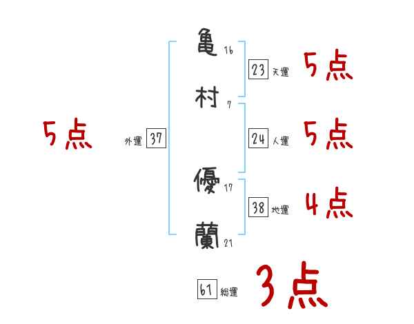 亀村優蘭さんの画数の鑑定結果