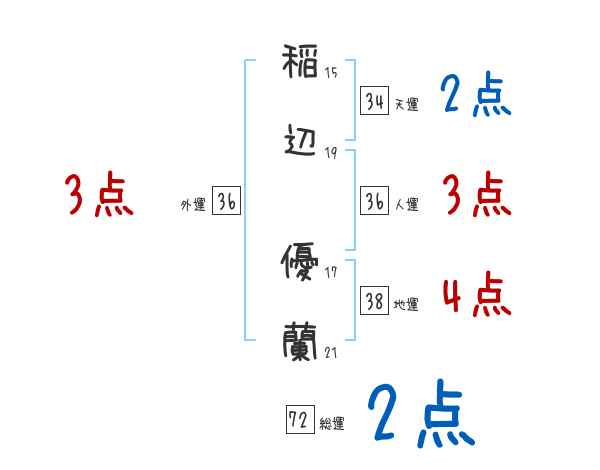 稲辺優蘭さんの画数の鑑定結果