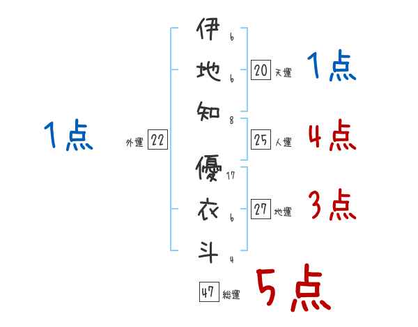 伊地知優衣斗さんの画数の鑑定結果