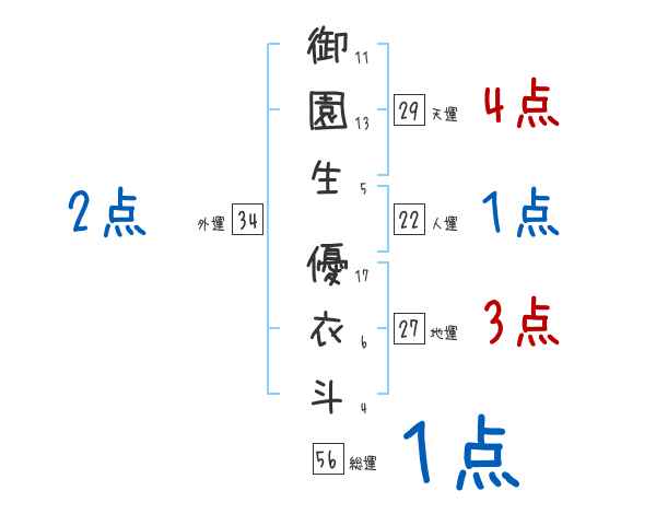 御園生優衣斗さんの画数の鑑定結果