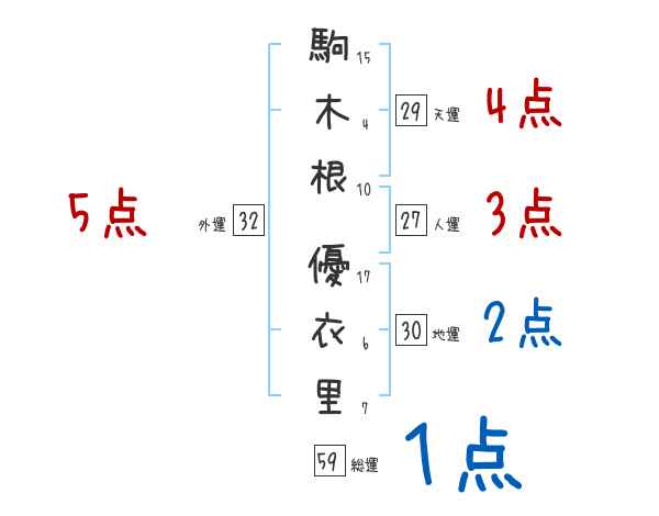 駒木根優衣里さんの画数の鑑定結果