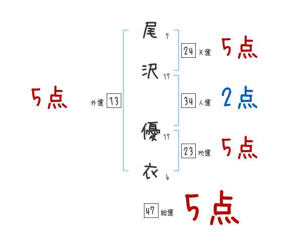 尾沢優衣さんの画数の鑑定結果
