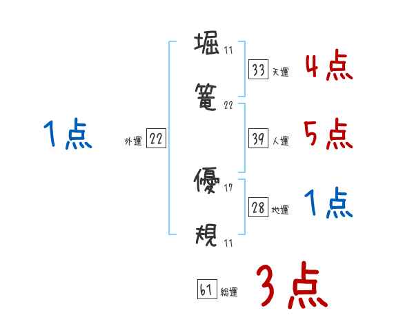 堀篭優規さんの画数の鑑定結果