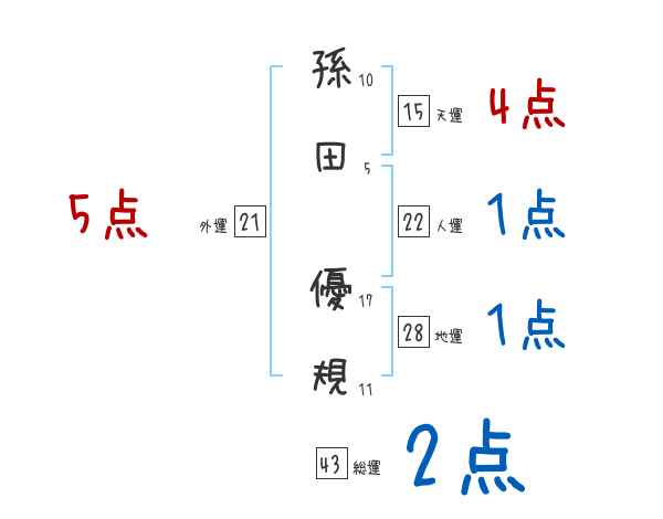 孫田優規さんの画数の鑑定結果