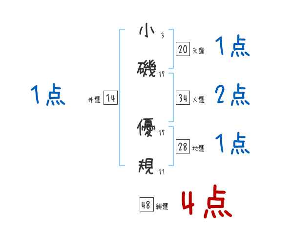 小磯優規さんの画数の鑑定結果