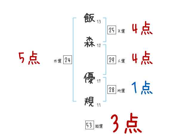 飯森優規さんの画数の鑑定結果