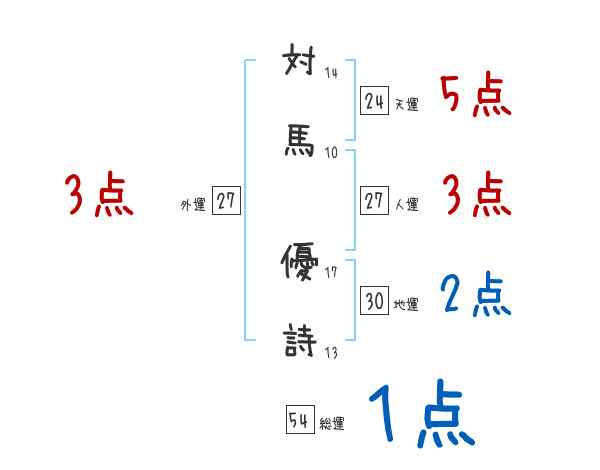 対馬優詩さんの画数の鑑定結果