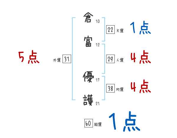 倉富優護さんの画数の鑑定結果