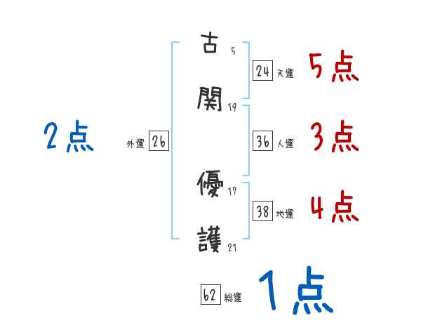 古関優護さんの画数の鑑定結果