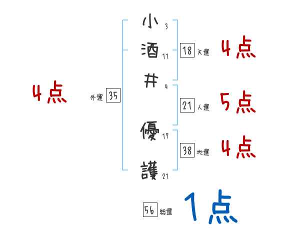 小酒井優護さんの画数の鑑定結果