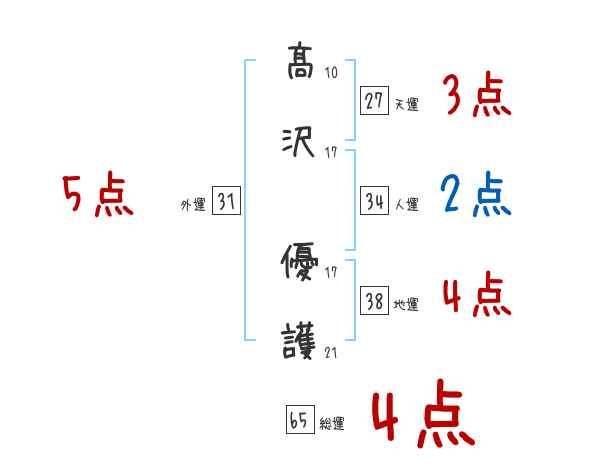 髙沢優護さんの画数の鑑定結果
