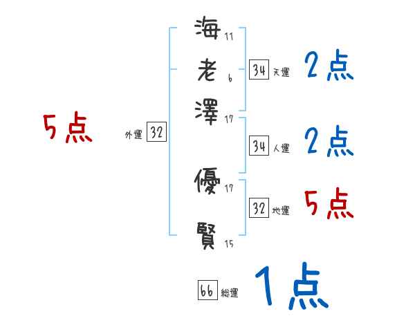 海老澤優賢さんの画数の鑑定結果