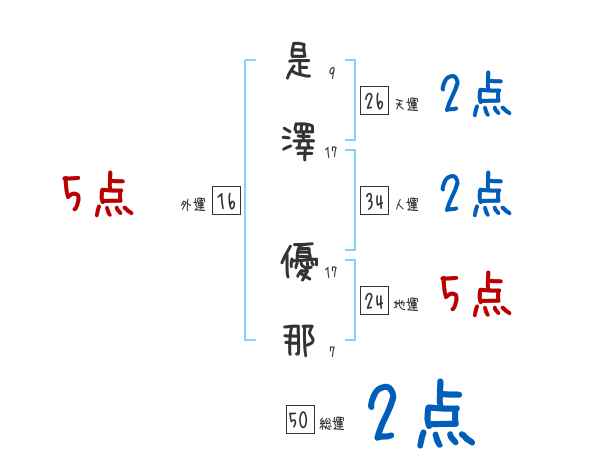 是澤優那さんの画数の鑑定結果