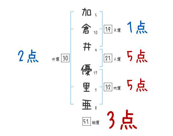 加倉井優里亜さんの画数の鑑定結果