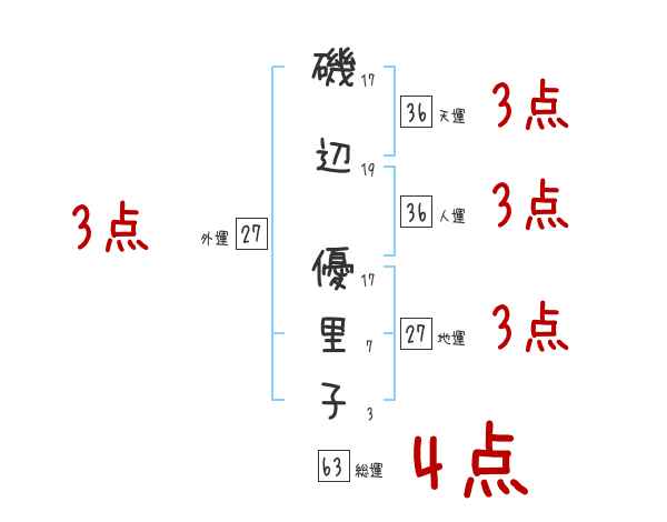 磯辺優里子さんの画数の鑑定結果