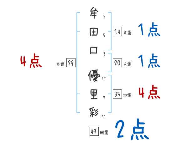 牟田口優里彩さんの画数の鑑定結果
