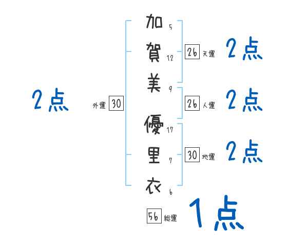 加賀美優里衣さんの画数の鑑定結果