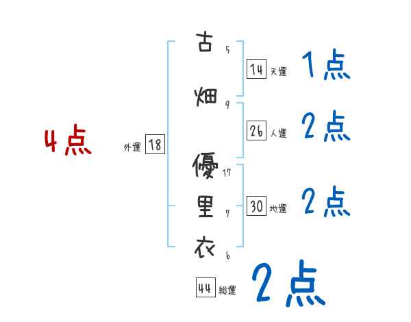 古畑優里衣さんの画数の鑑定結果