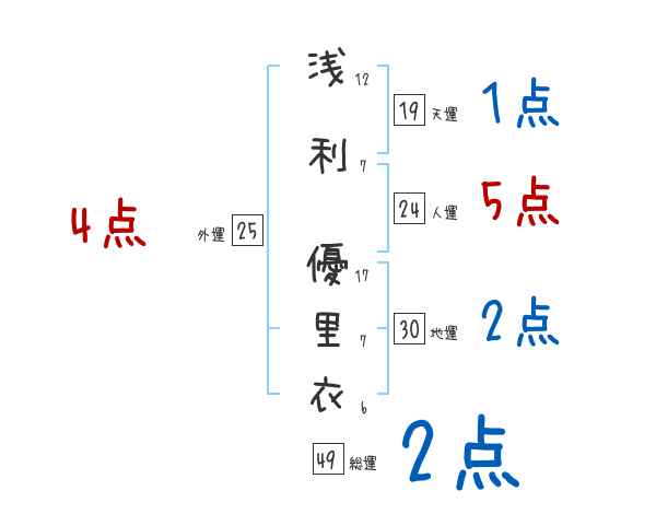 浅利優里衣さんの画数の鑑定結果