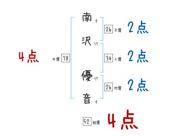 南沢優音さんの画数の鑑定結果