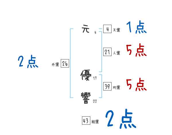 元優響さんの画数の鑑定結果
