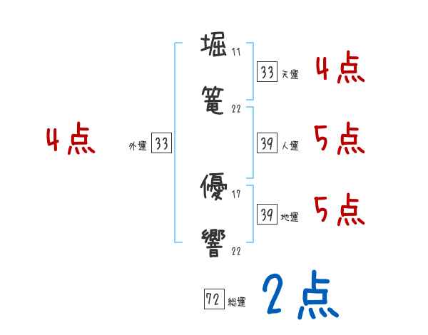 堀篭優響さんの画数の鑑定結果