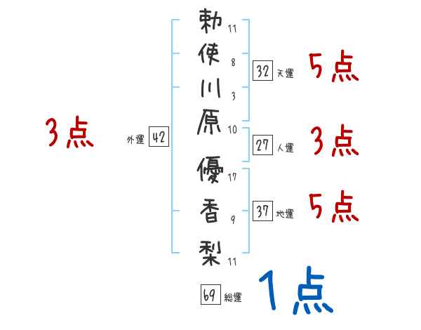 勅使川原優香梨さんの画数の鑑定結果