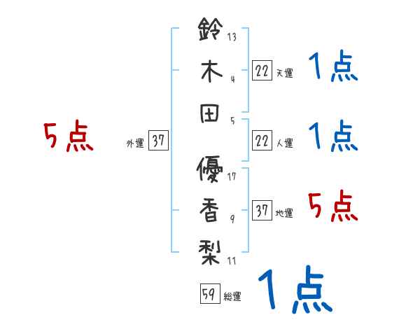 鈴木田優香梨さんの画数の鑑定結果