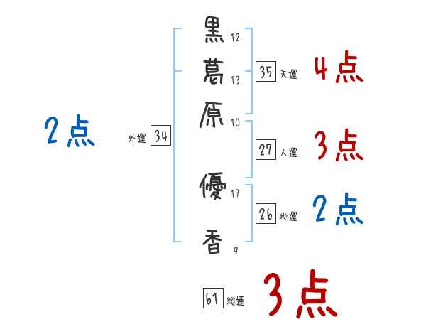 黒葛原優香さんの画数の鑑定結果