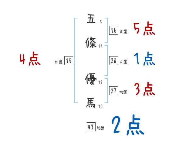五條優馬さんの画数の鑑定結果