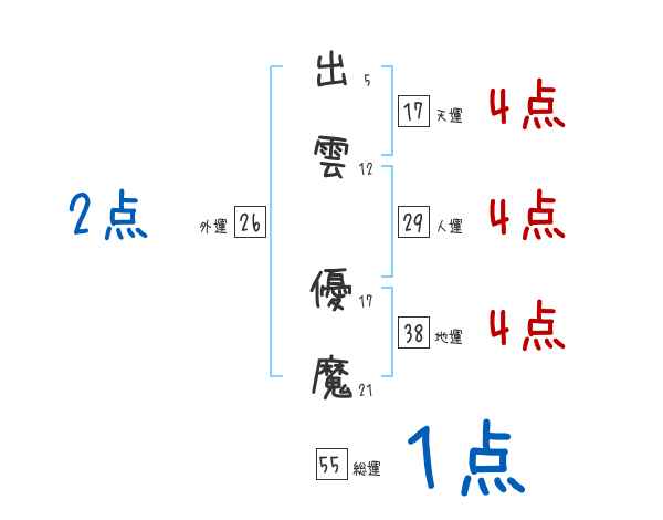 出雲優魔さんの画数の鑑定結果