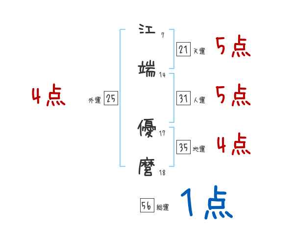 江端優麿さんの画数の鑑定結果