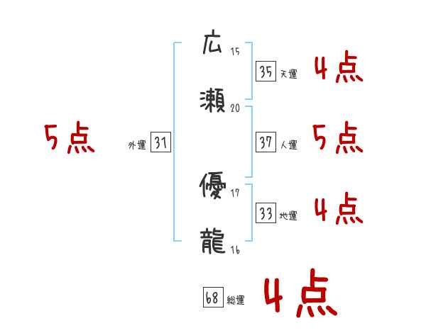広瀬優龍さんの画数の鑑定結果