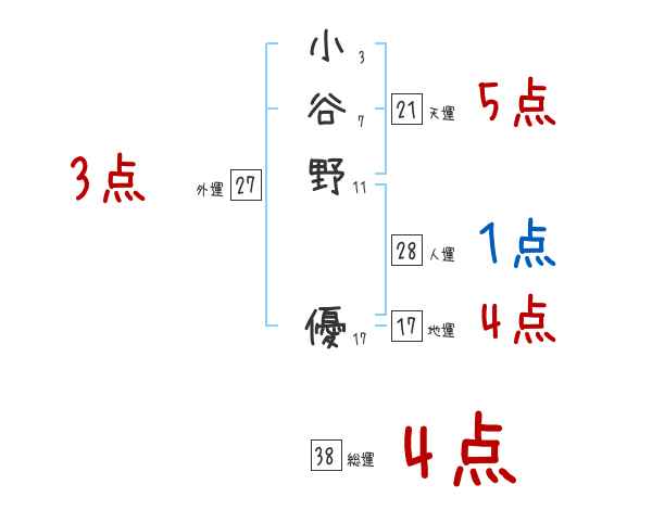 小谷野優さんの画数の鑑定結果