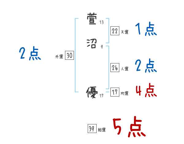 萱沼優さんの画数の鑑定結果