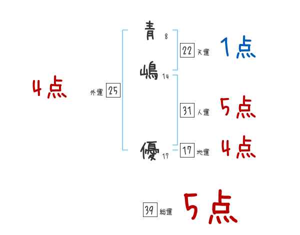 青嶋優さんの画数の鑑定結果