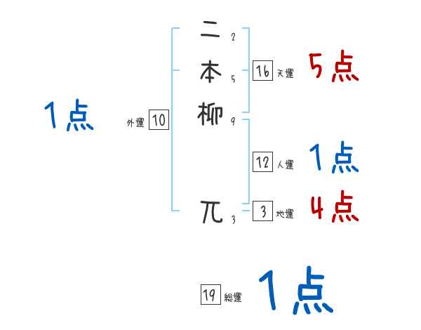 二本柳兀さんの画数の鑑定結果