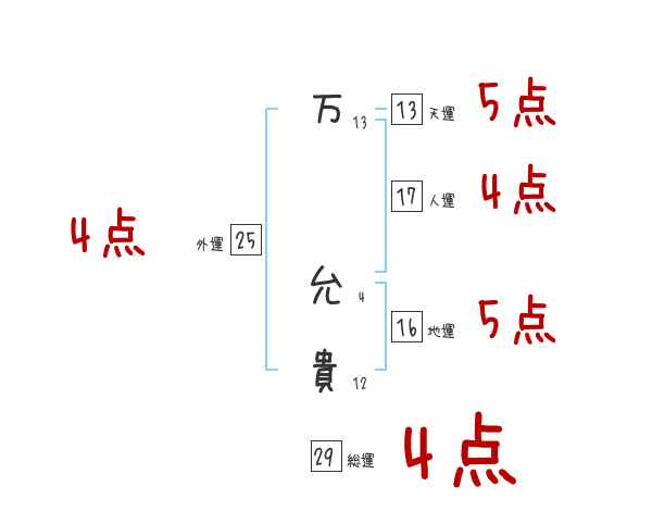 万允貴さんの画数の鑑定結果